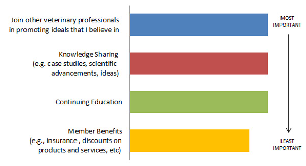 Rank the importance of the following factors when considering whether to join a professional veterinary organization.